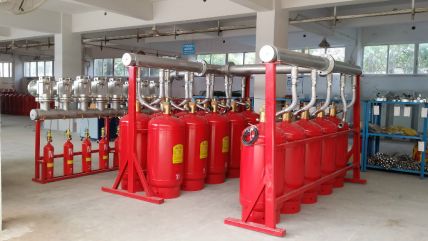 When the system is operating, the fire extinguisher of the fire extinguishing agent cylinder group is charged by the specially designed pressurized gas cylinder group according to the designed pressure, and delivered to the HFC-227ea fire extinguishing system. For high lift and long distance protection area, the solution of external pressure storage HFC-227ea fire extinguishing system is generally adopted, and its conveying distance can reach more than 160M.